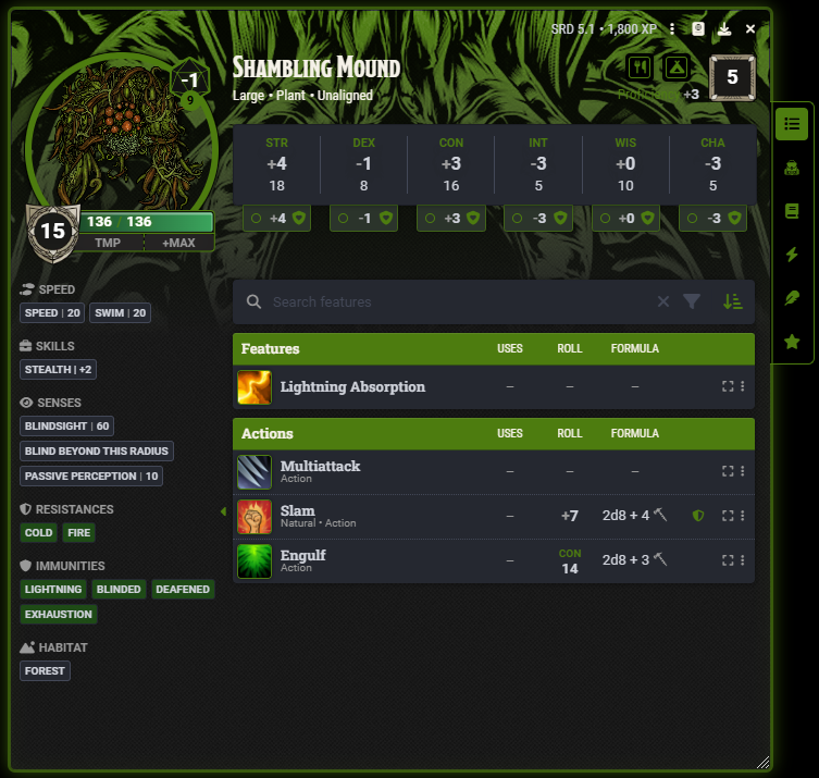 The CR selector previews how the active creature type will be shifted for a different threat band without forcing you to maintain separate full profiles for every CR tier.