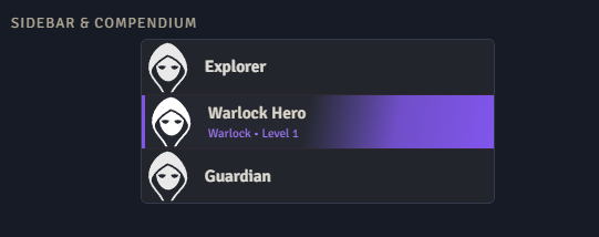 If sidebar colors are enabled for the active profile, actor rows in the sidebar and actor compendiums can use the same palette instead of staying visually disconnected from the sheet.